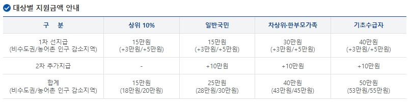 - 지원 금액: 국민 1인당 10만원